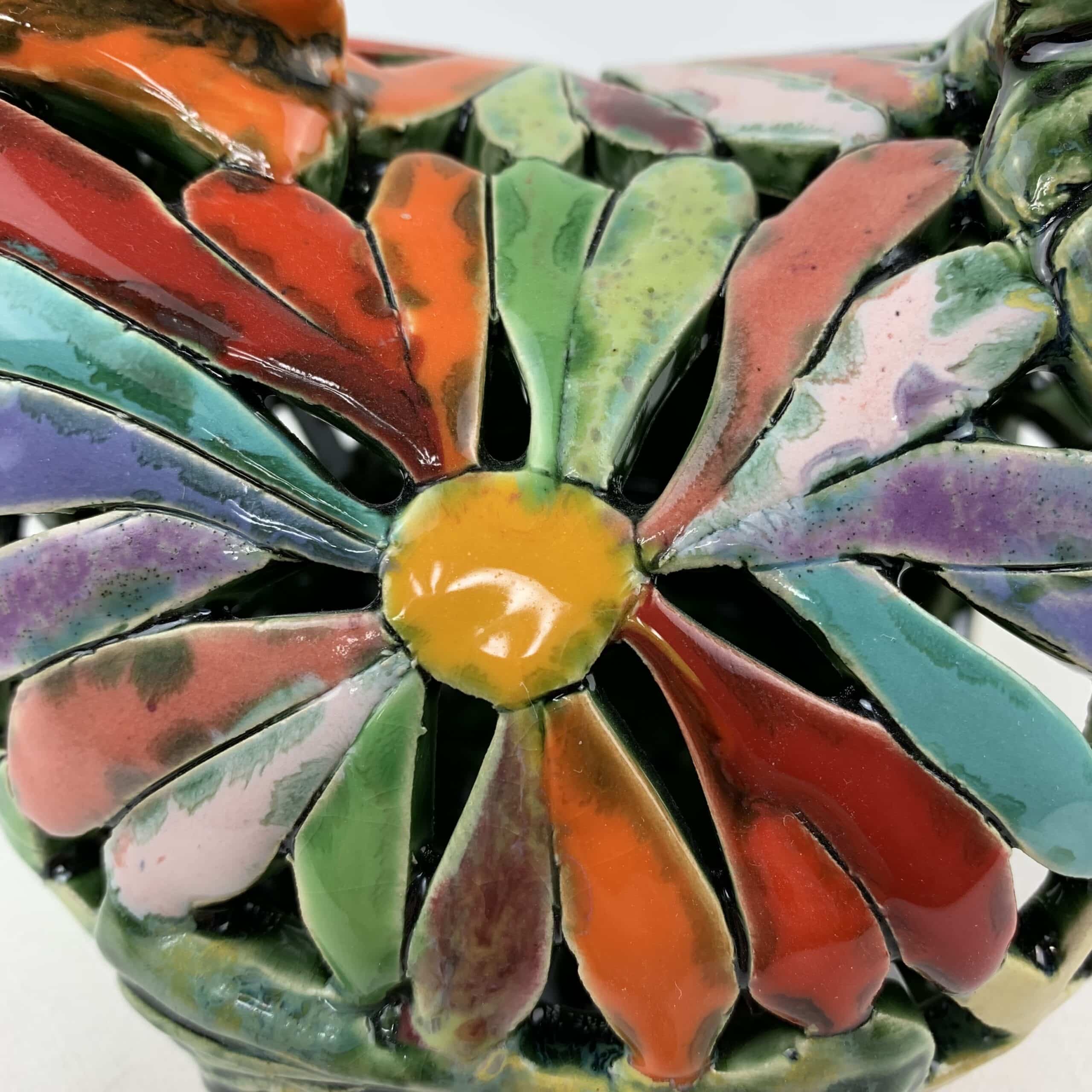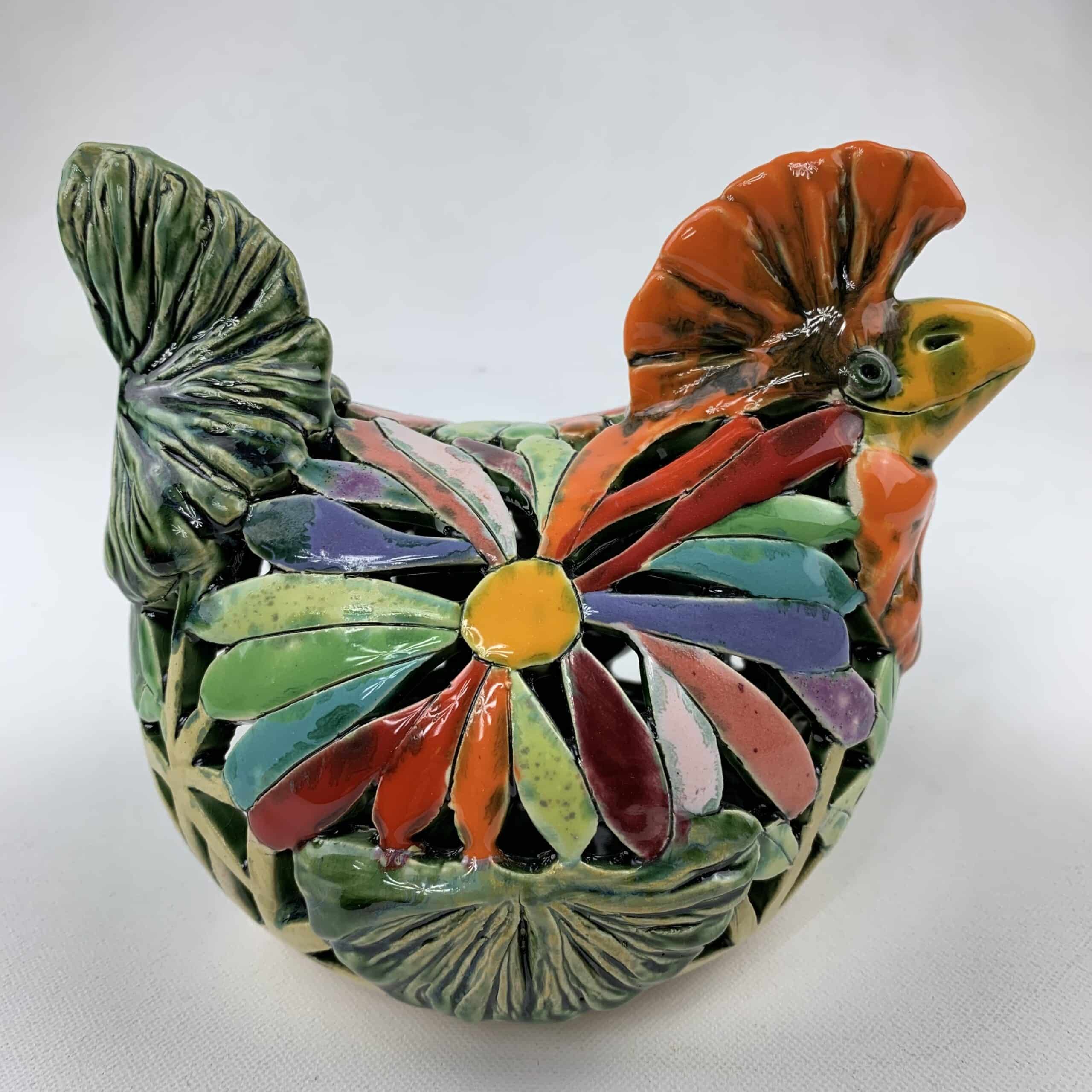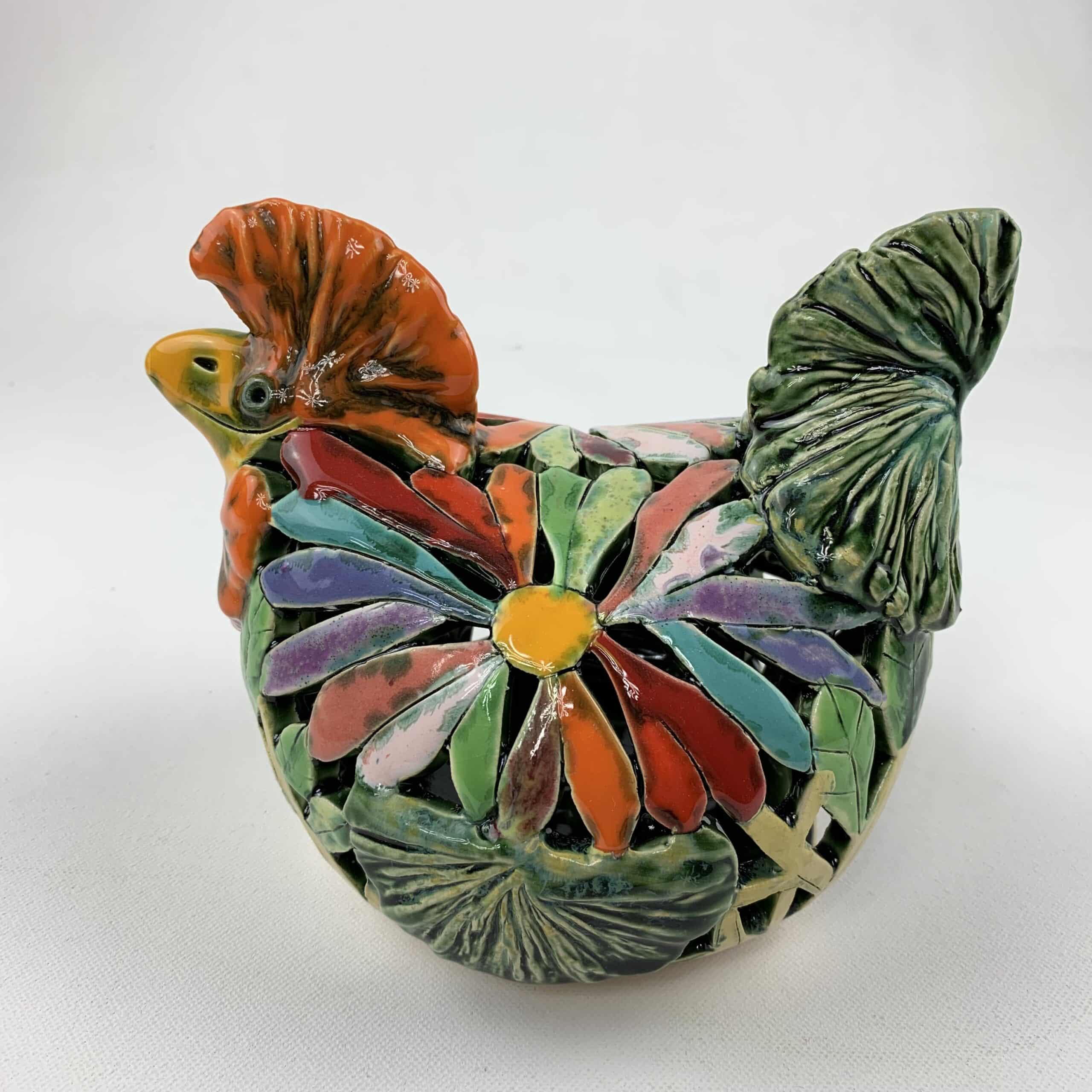 Bemalter Huhn-Windlicht mit bunten Blumen