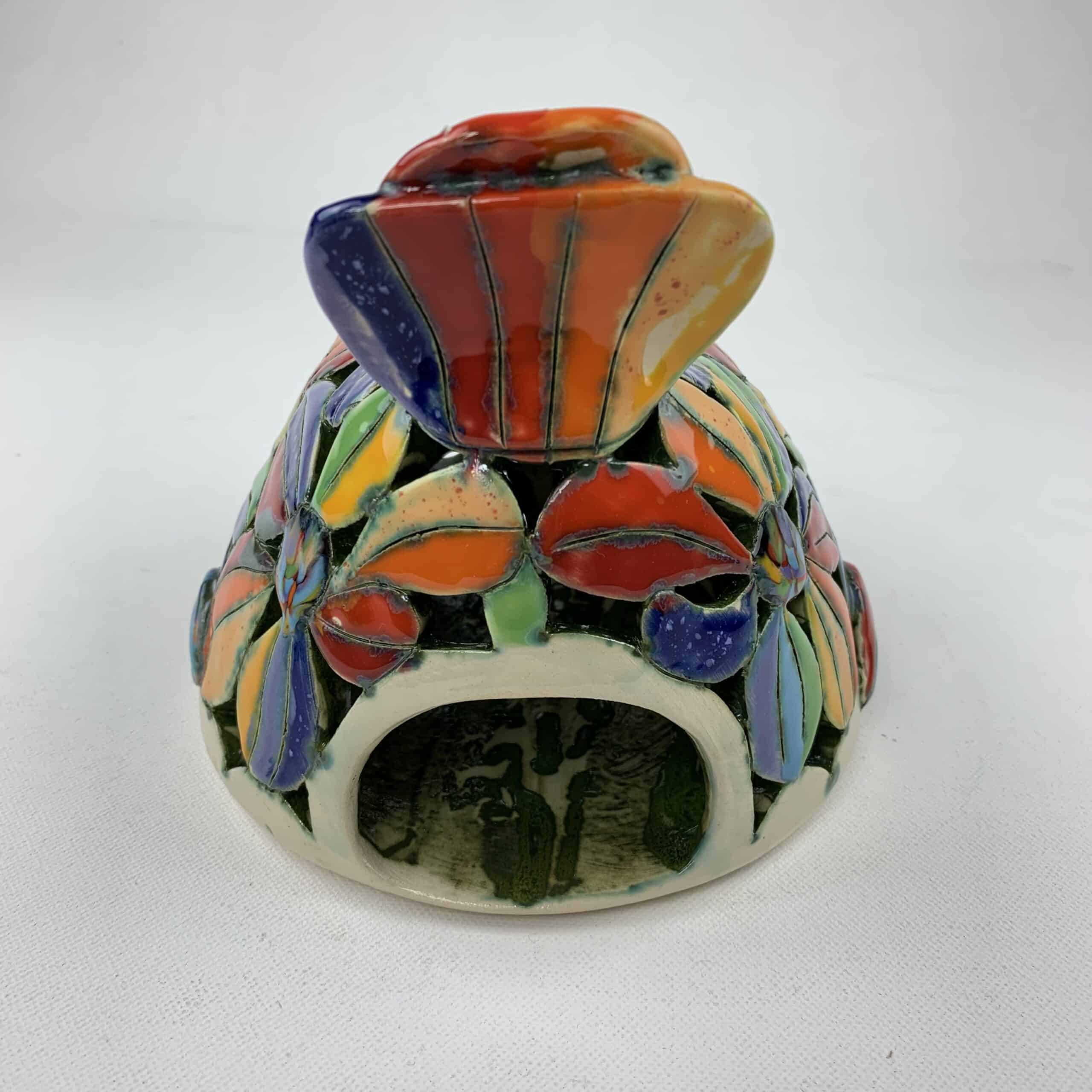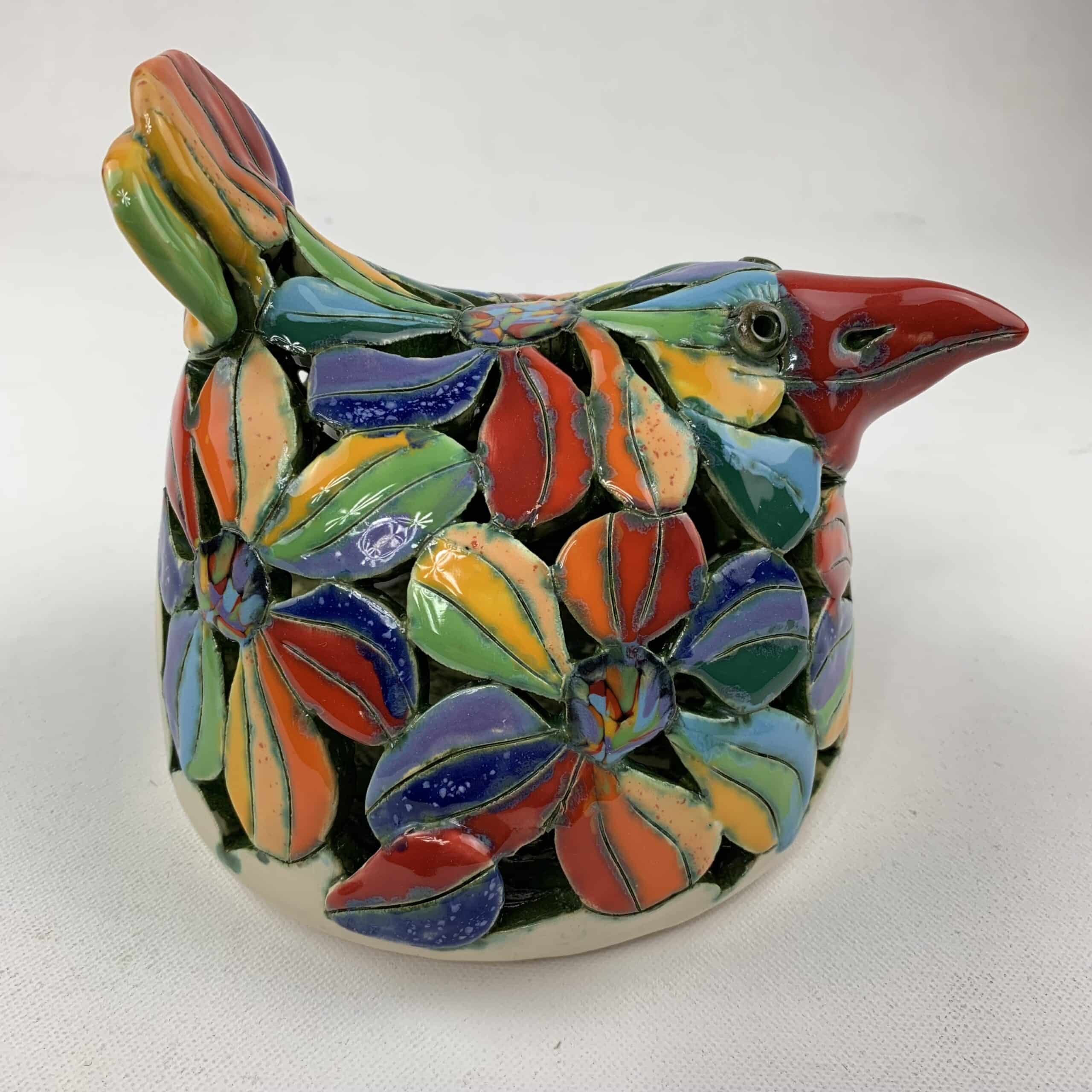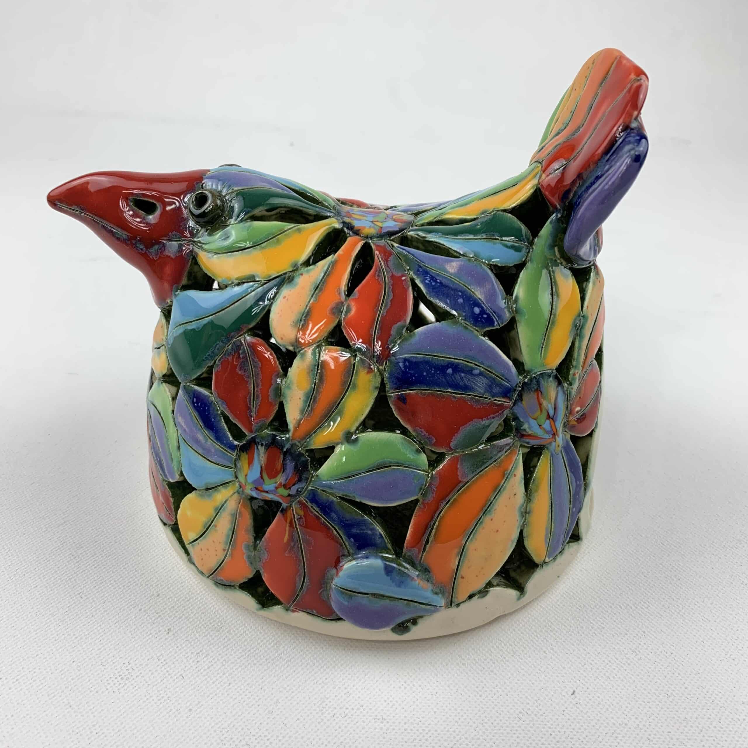 Bemalter Vogel-Windlicht mit bunten Blumen 1