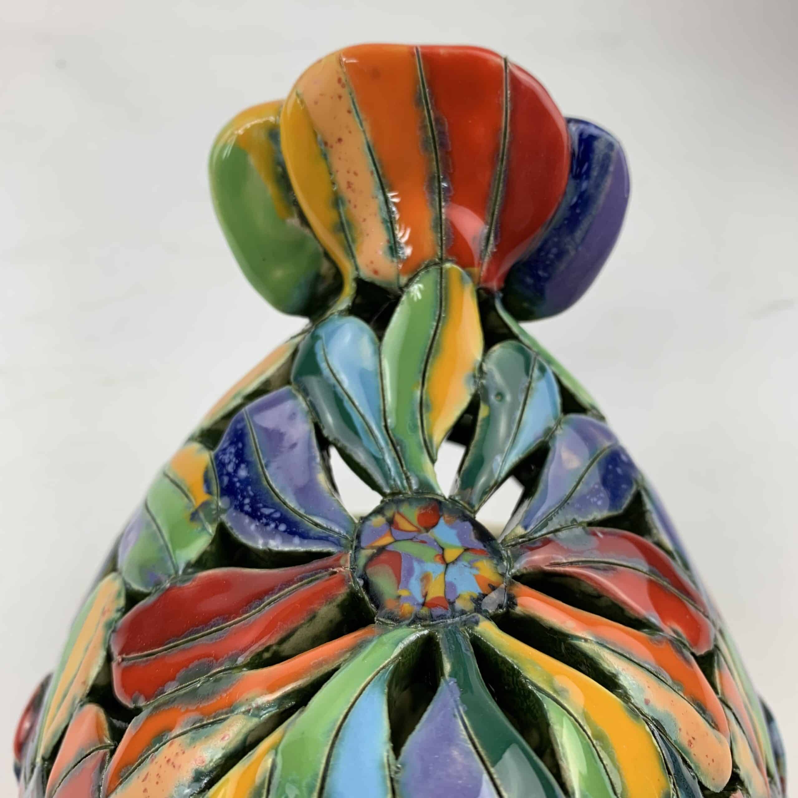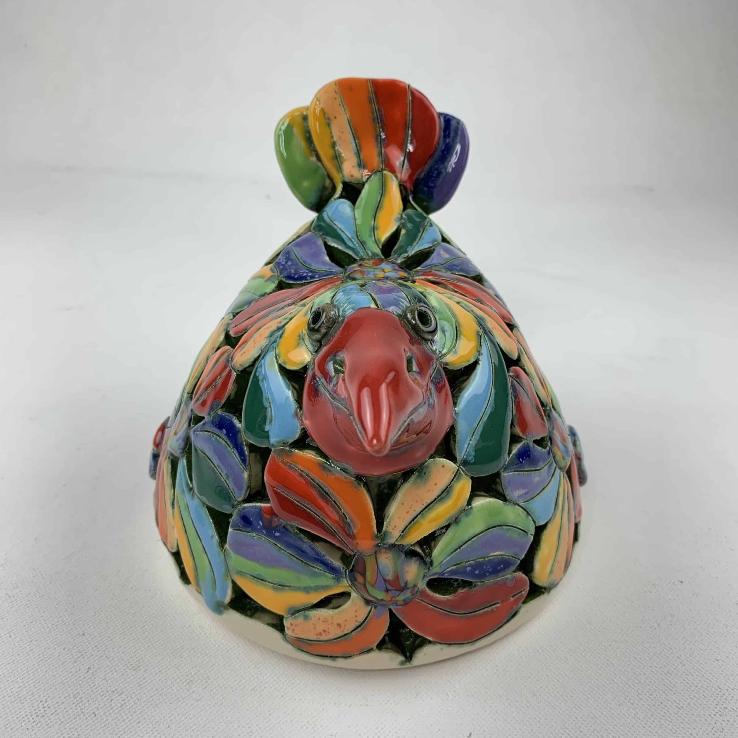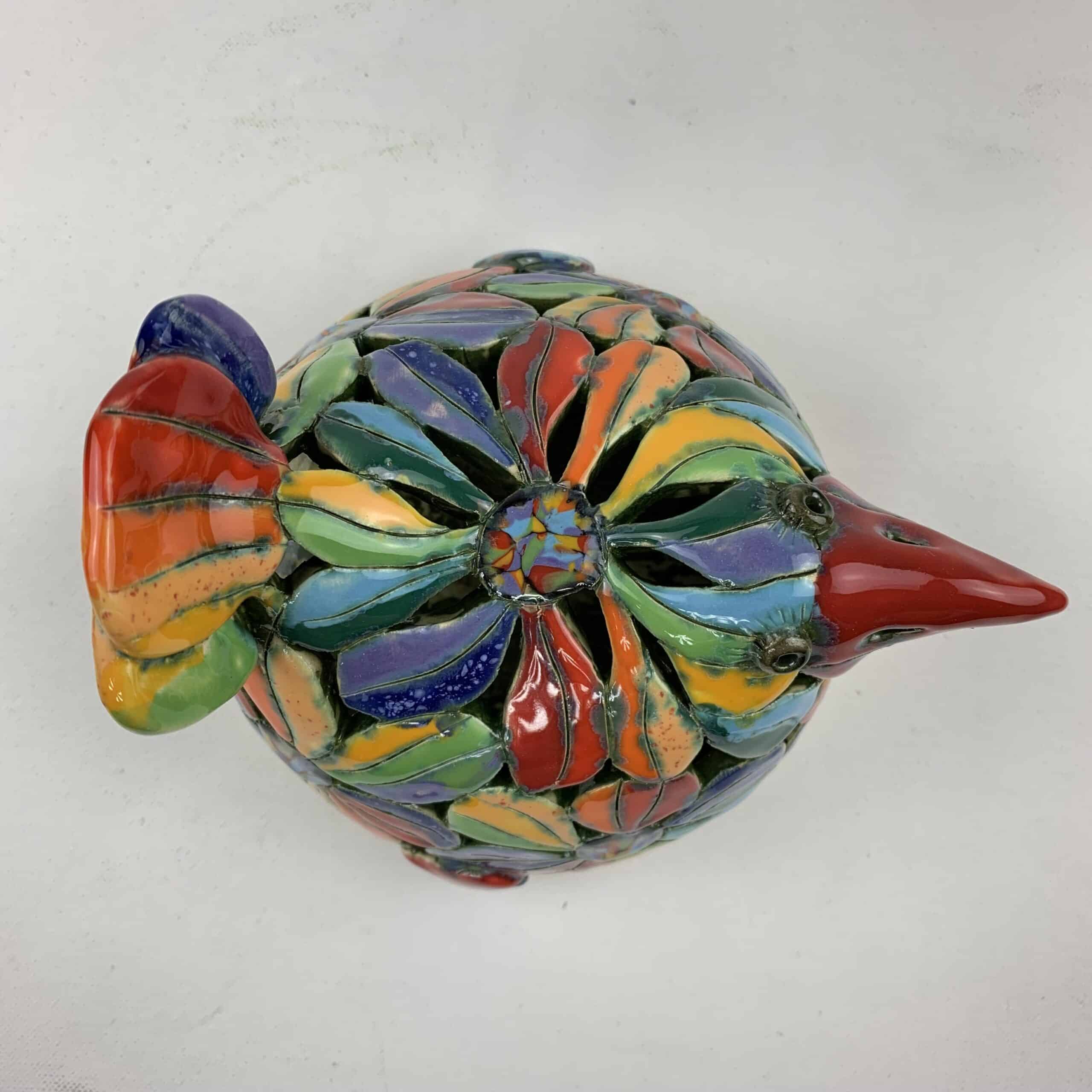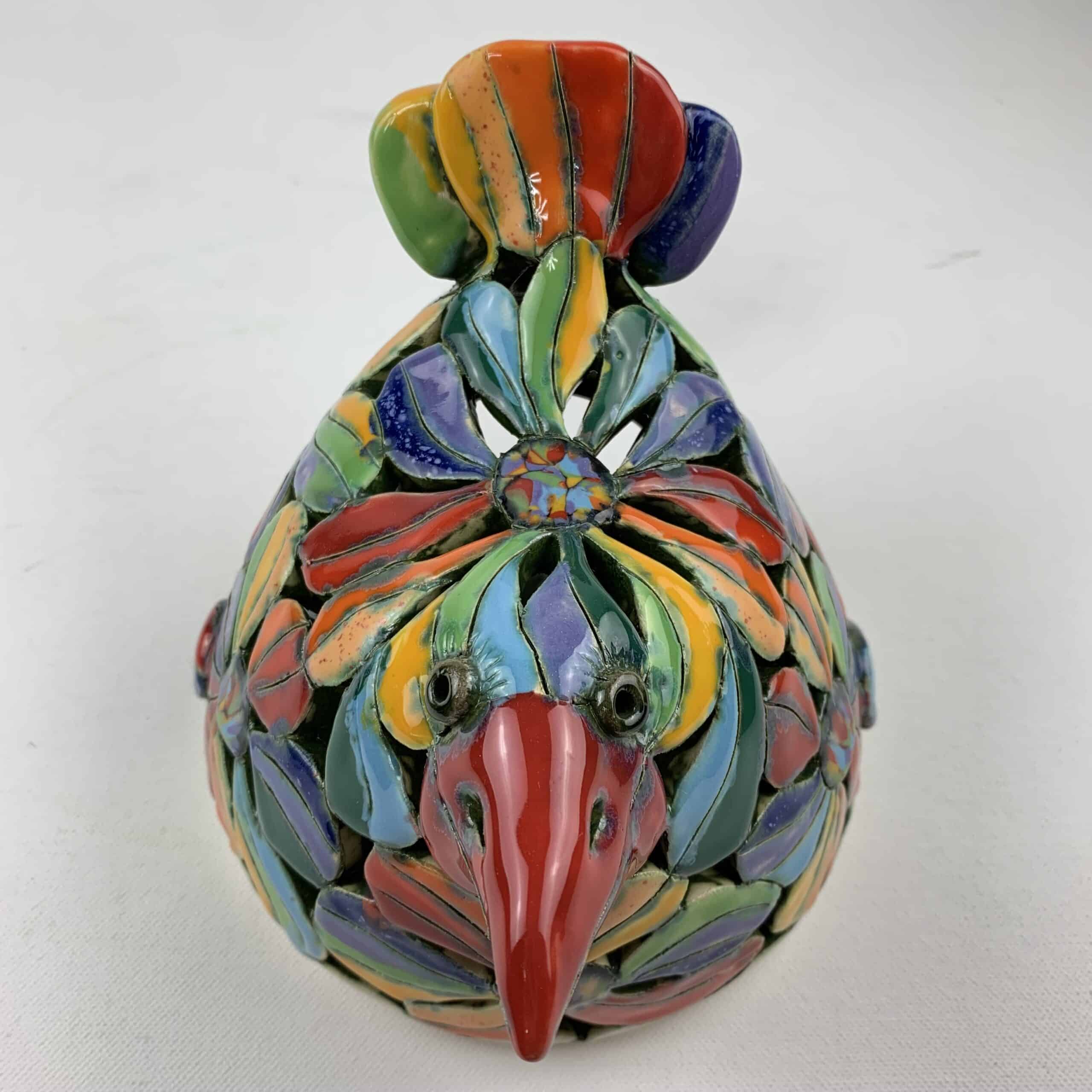 Bemalter Vogel-Windlicht mit bunten Blumen 1