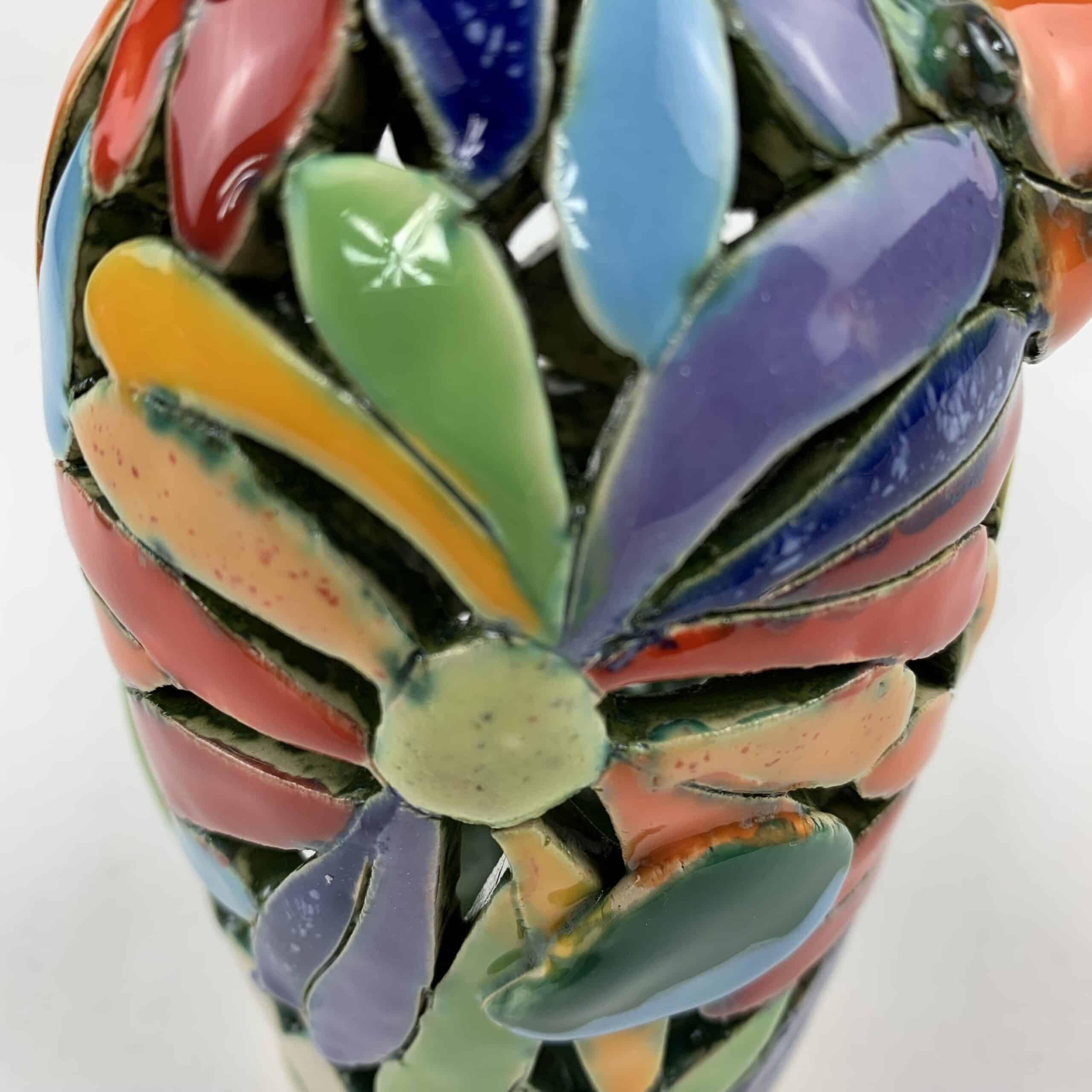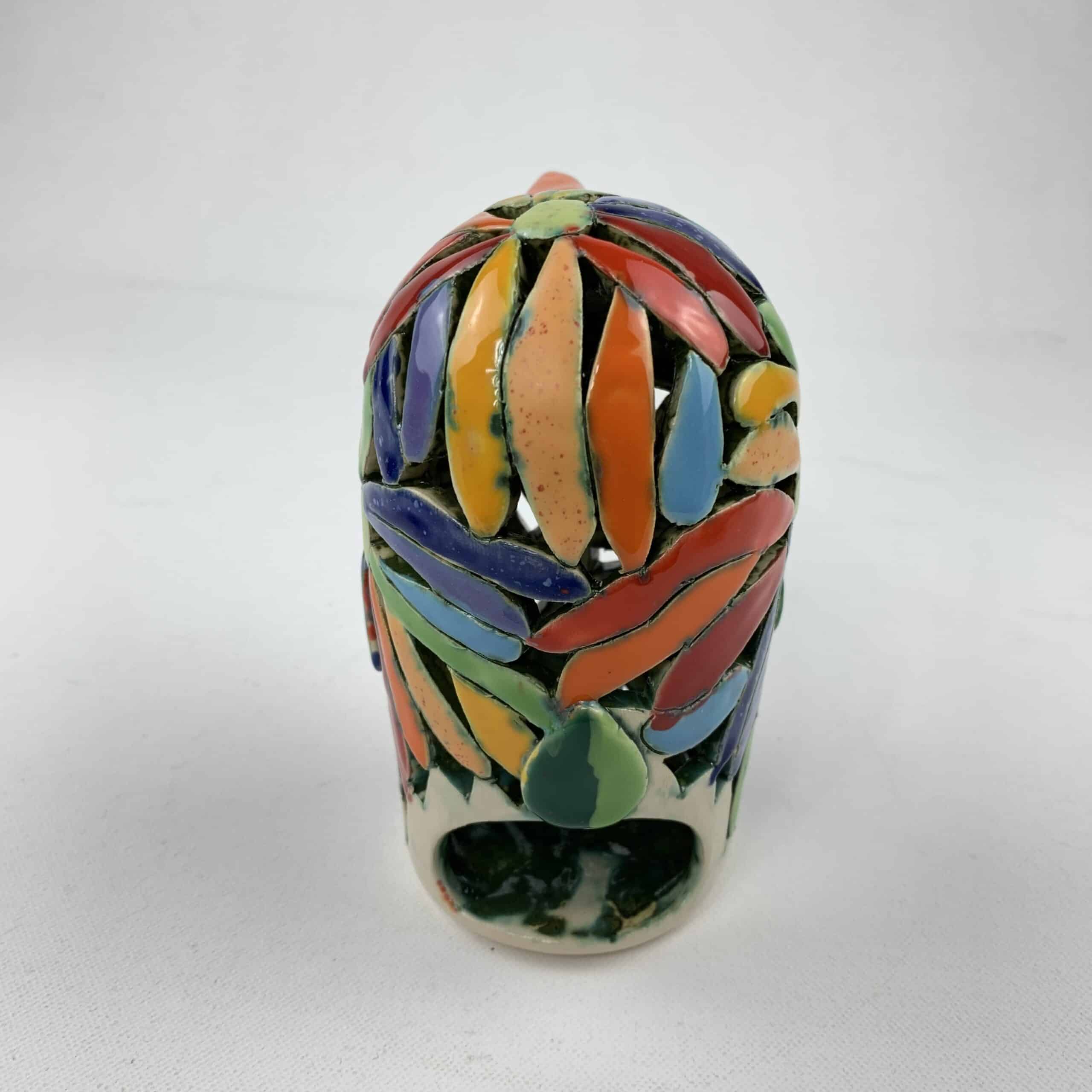 Bemalter Vogel-Windlicht mit bunten Kamillenblüten klein