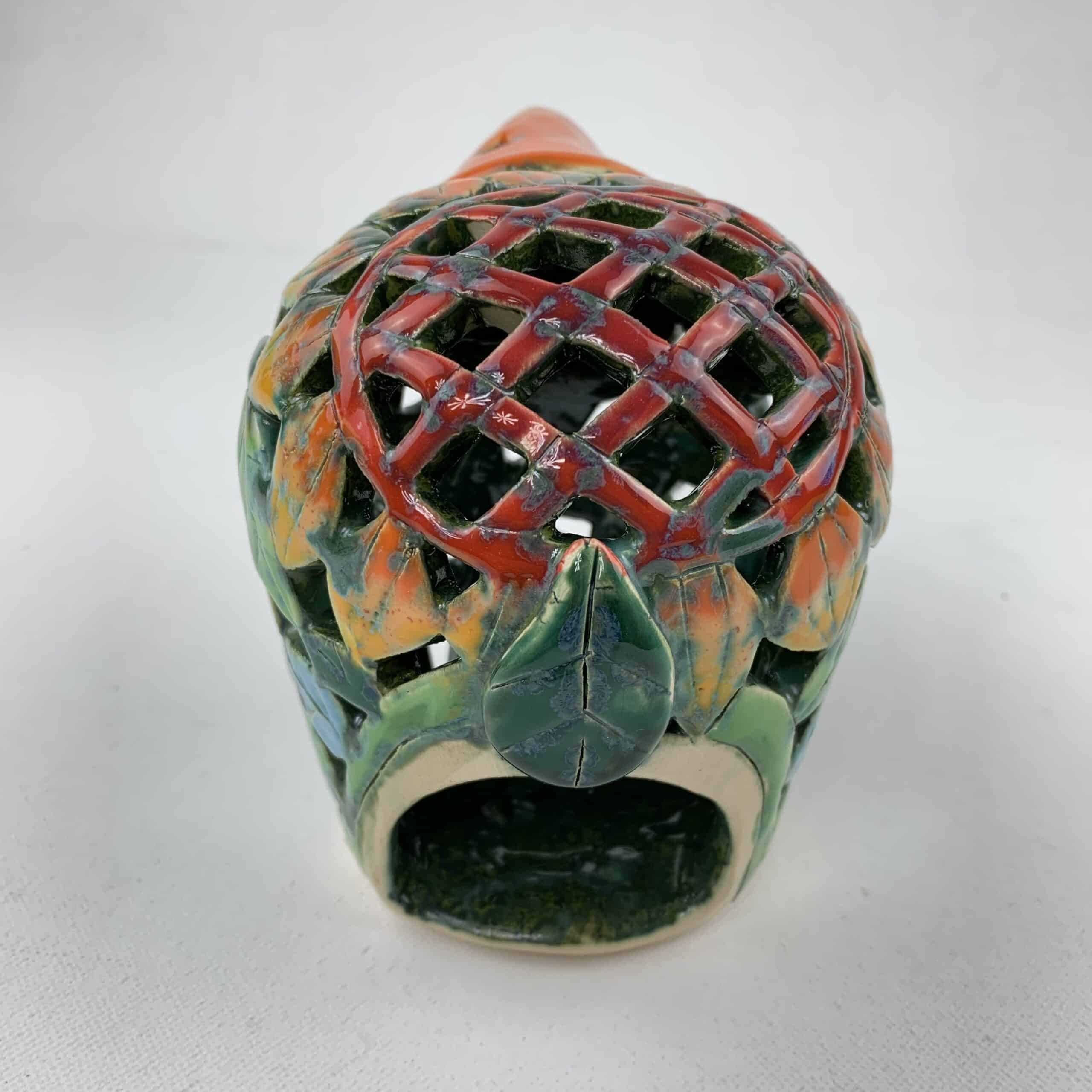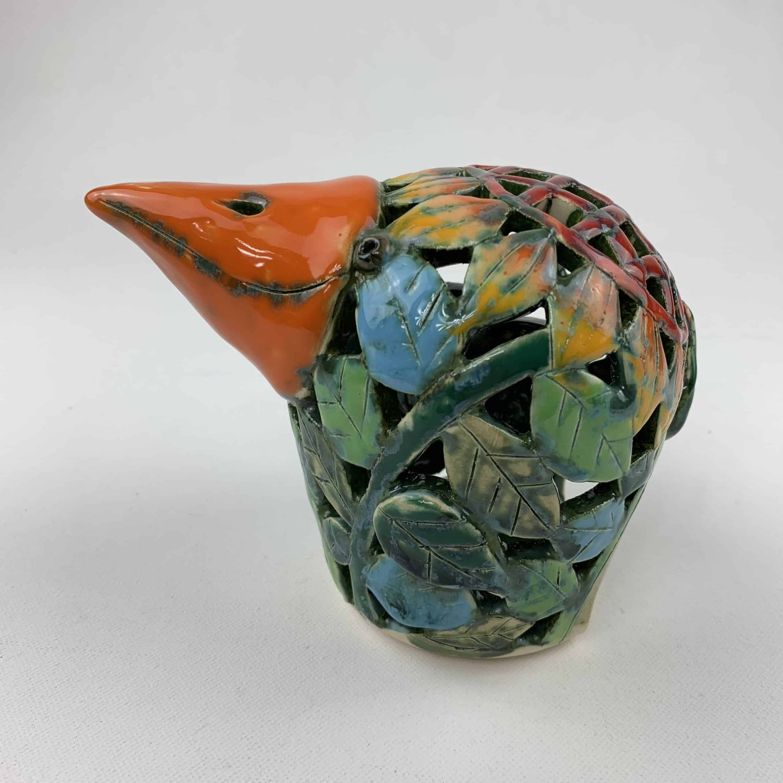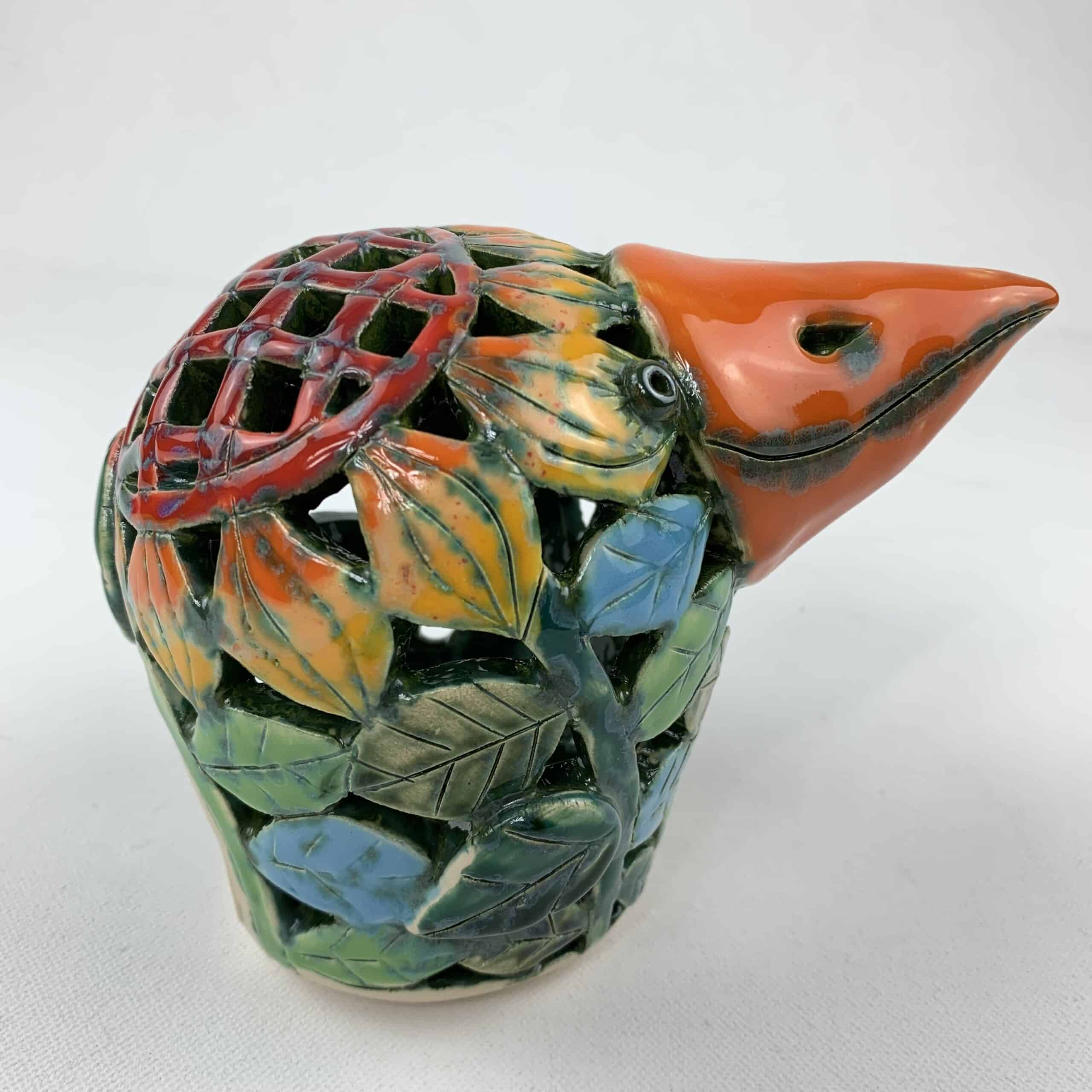 Bemalter Vogel-Windlicht mit bunten Sonnenblumen klein