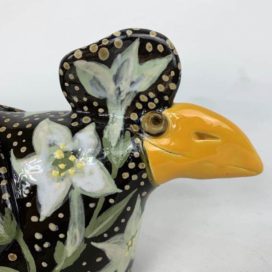 Bemaltes Hühnchen mit Blumen und Tupfen