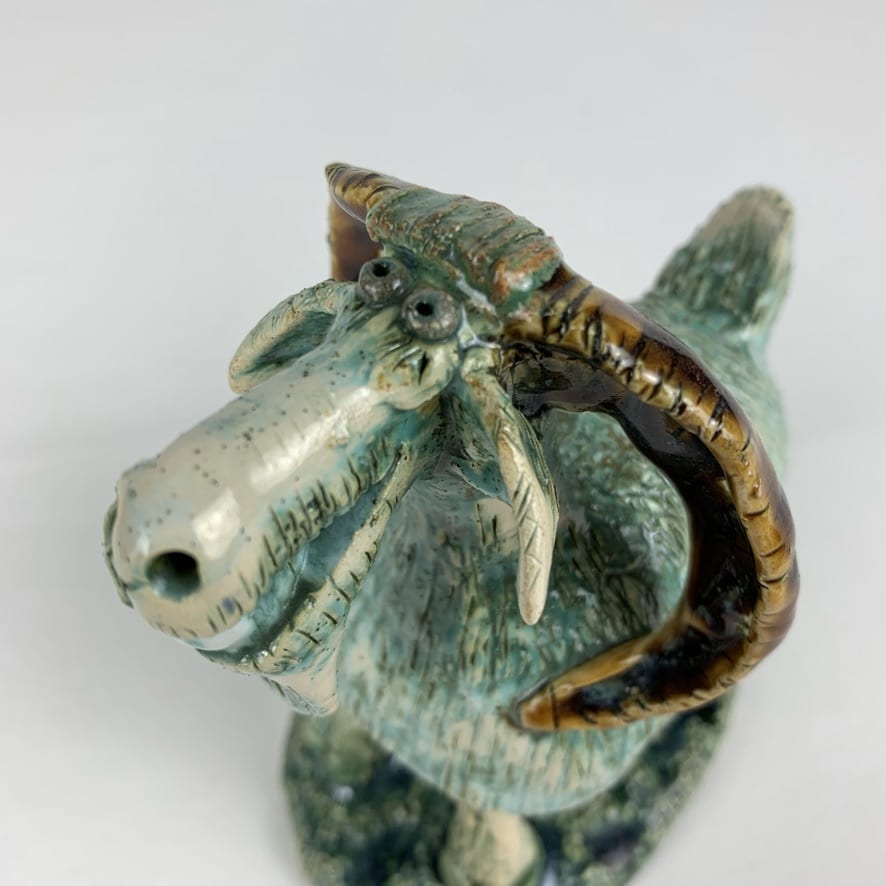 Technik: aus Ton gefertigt, glasiert sowie zweimal gebrannt